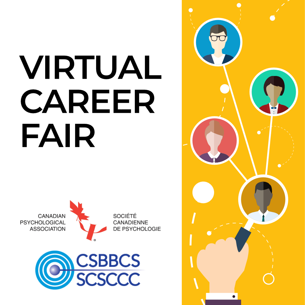 The Canadian Psychological Association (CPA), in collaboration with the Canadian Society for Brain, Behaviour and Cognitive Science (CSBBCS), is pleased to announce that it will be hosting a Virtual Career Fair on November 12th, 2020. This Fair will mark the first in a series of Career Fairs the CPA will host in 2020 and 2021.